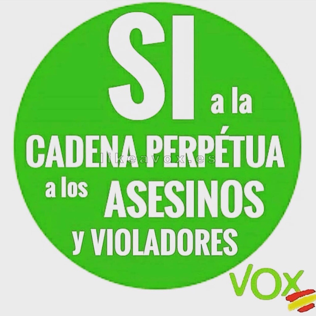 Desde Vox, exigen la aprobación de una cadena perpetua sin ningún tipo de posibilidades de reinserción para determinados delitos. Para proteger a la sociedad, para castigar al delincuente y para resarcir a la víctima.